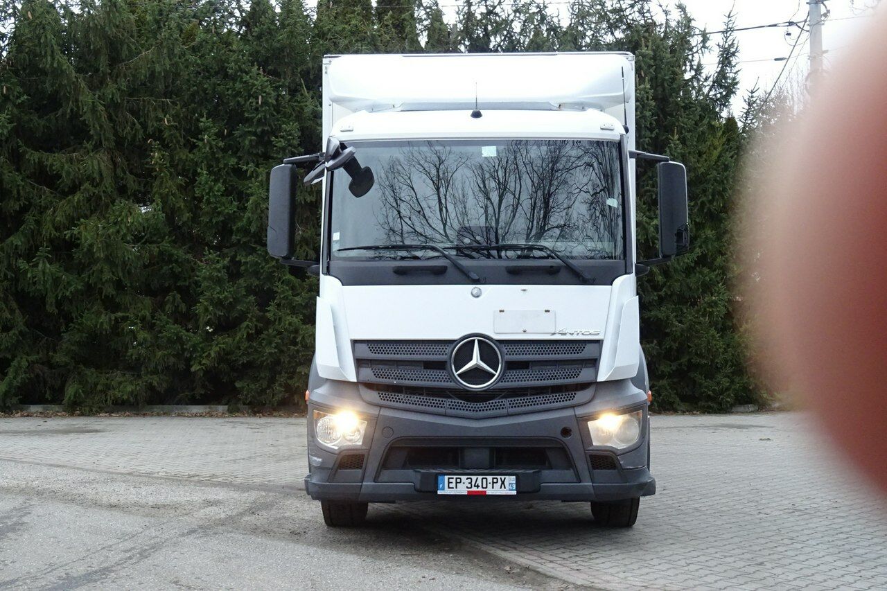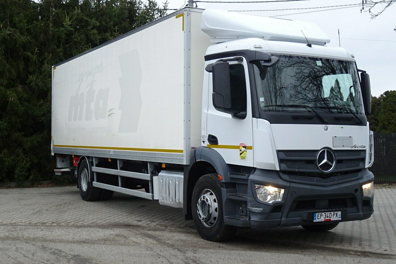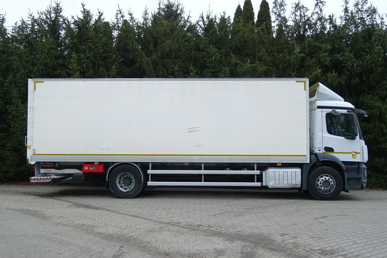 Mercedes Antos 1830 Euro 6 rok prod. 07.2017, skrzynia automat, przebieg 436 tys.km Udokumentowany pełną książką serwisową! DMC 19000kg, ładowność 9160kg, zabudowa kontener z drzwiami z boku zabudowy zamykany roletą o wymiarach 8.50 x 2.49 x 242 zamykany roletą, podłoga mocna ze wzmocnieniami metalowymi, winda chowana pod spód marki Dhollandia udźwig 1500kg, opony przód 80% tył 90%, tył na poduszkach, klimatyzacja, tempomat, ESP, blokada mostu, światła dzienne, owiewka na dachu, kierownica wielofunkcyjna, szyberdach, hamulec zjazdowy, elektryczne szyby, podgrzewane i elektrycznie sterowane lusterka, radio oryginalne Mercedes, sprowadzonyMożliwość zmiany windy na klapę (pokazane na ostatnich zdjęciach) !