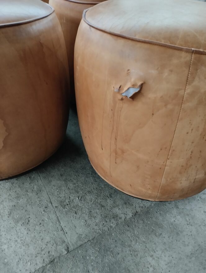 Piękne, naturalne skórzane fotele w kolorze brązowym. Wykonane z wysokiej jakości materiałów, zapewniają komfort i elegancję. Doskonale sprawdzą się jako stylowe uzupełnienie każdego wnętrza. Stan dobry jednak posiada delikatne uszkodzenie jak na foto . Odbiór osobisty Góra Kalwaria Zebrzydowska.Pufy