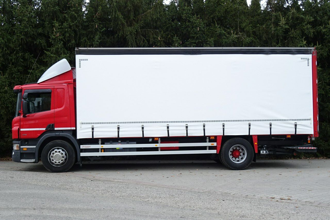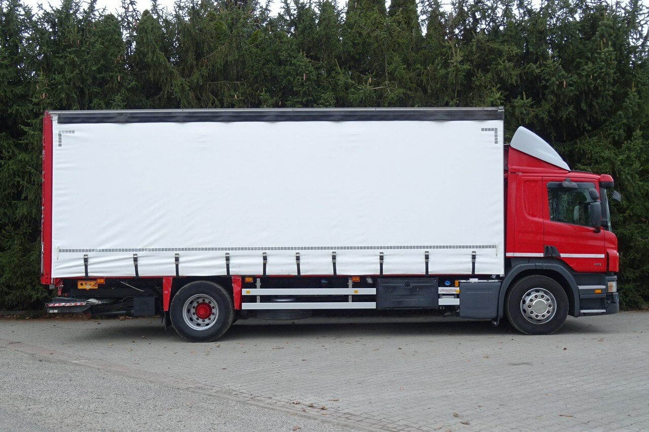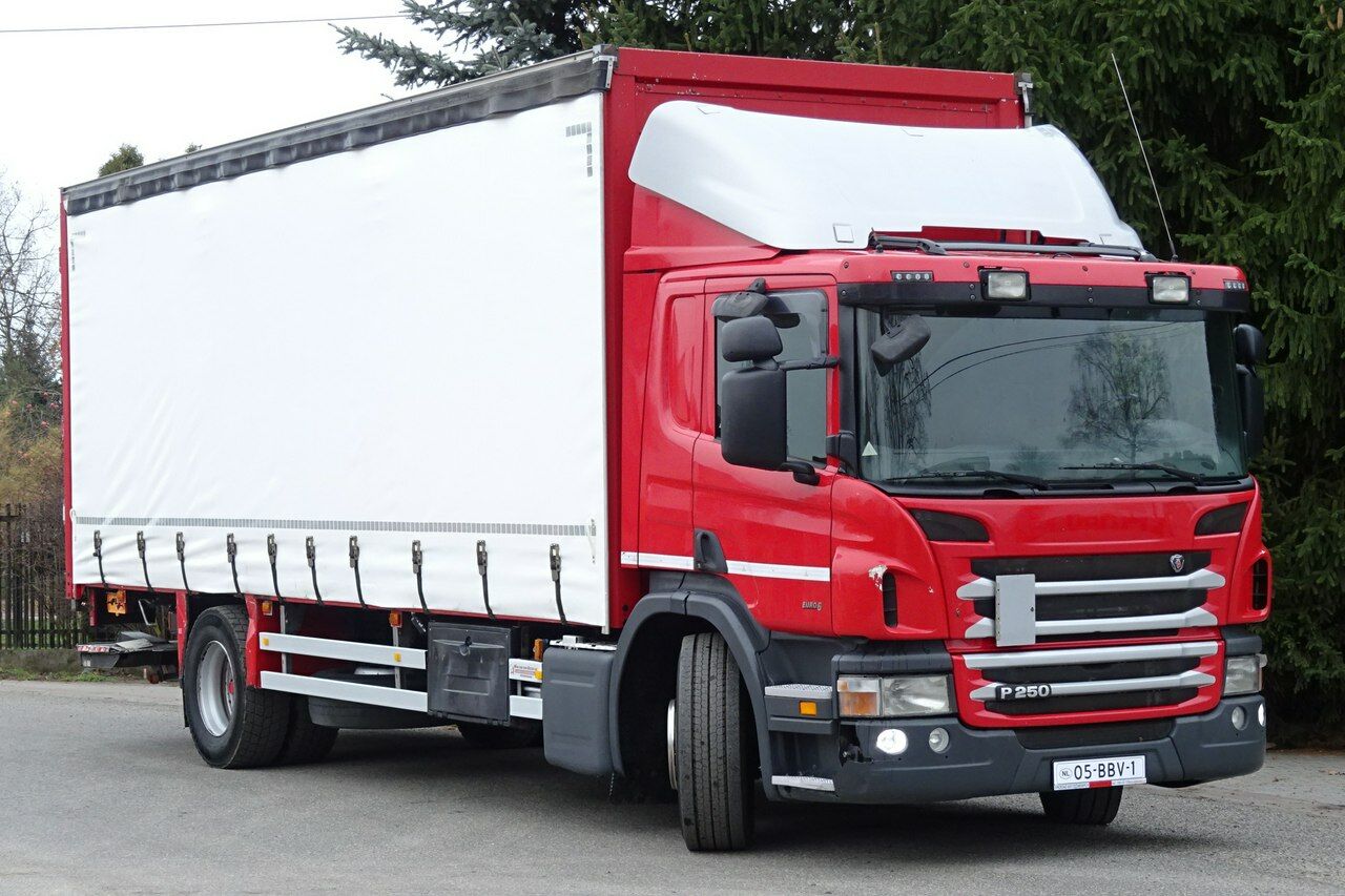 Scania P 250 sypialna ,łóżko, EURO 6, data pierwszej rejestracji 05.2013 rok, skrzynia automat, przebieg 790 tys.km udokumentowany!, Dmc 18600 kg. ładowność 9000kg, Skrzynia zabudowa Firanka o wymiarach 741 x 250 x 252 w wejściu (wewnątrz 2.61 zamykana drzwiami winda Marki Dhlladnia udźwig 2 tony, podłoga bardzo mocna z metalowymi wzmocnieniami, tył na poduszkach, klimatyzacja ,tempomat , centralne smarowanie, opony przód 90% tył 95%, owiewka na dachu, halogeny, elektryczne szyby, podgrzewane i elektrycznie sterowane lusterka, kierownica wielofunkcyjna , sprowadzona .Możliwość sprzedaży bez zabudowy. Nowe są zamówione plandeki białe grube.(Możliwość wymiany plandek na dowolny kolor).
