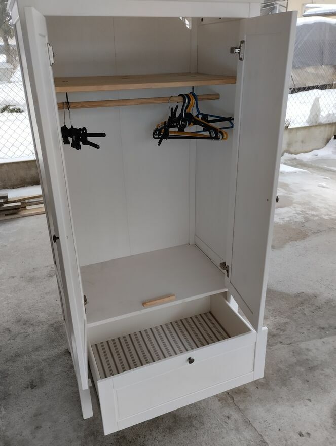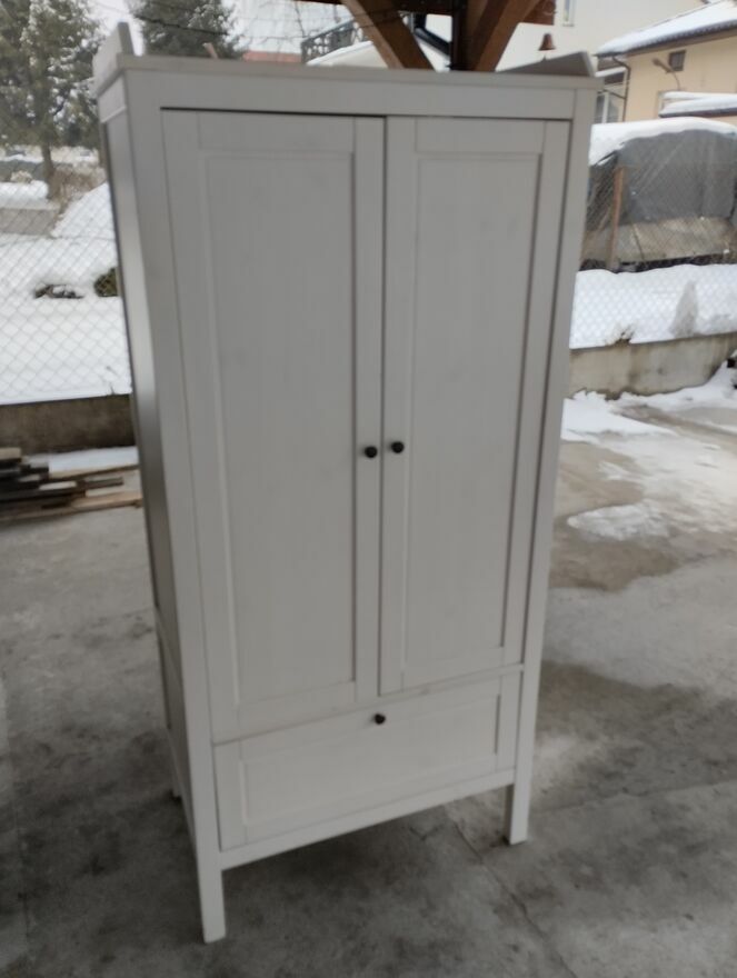 Praktyczna i pojemna szafa dziecięca w dobrym stanie. Może posłużyć jako miejsce do przechowywania ubrań, zabawek lub innych przedmiotów. Szafa jest w jasnym kolorze, pasującym do wielu aranżacji wnętrz. Stanowi dobrą okazję na uzupełnienie wyposażenia pokoju dziecięcego. Odbiór osobisty Góra Kalwaria.Szafa