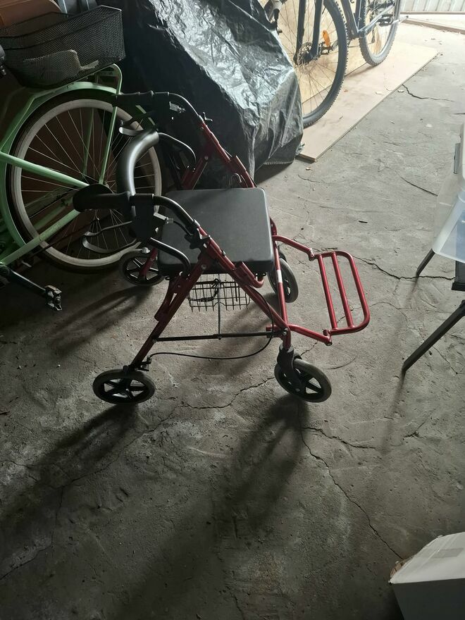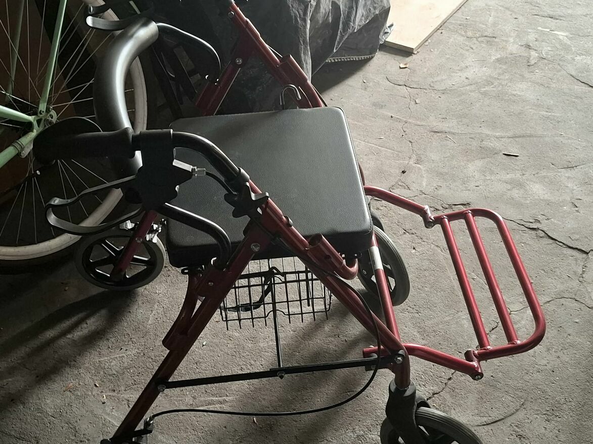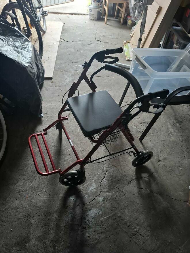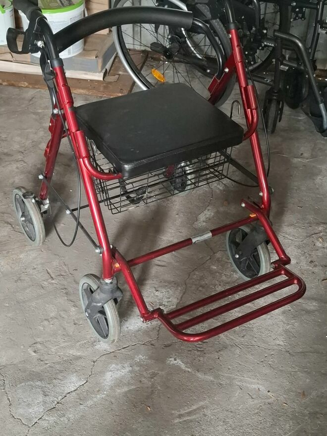 Wózek czysty, gotowy do użytku. Chodzik bardzo praktyczny – można usiąść i przewozić drobne rzeczy.
