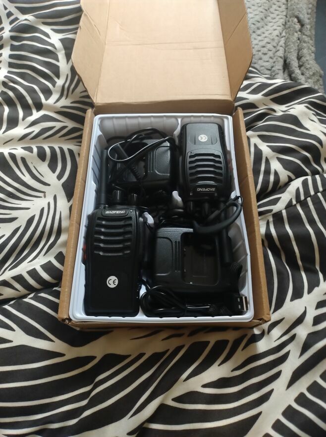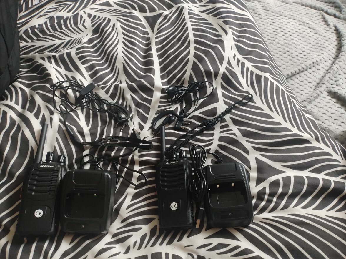 Sprzedam w pełni sprawny zestaw dwóch krótkofalówek Baofeng. W komplecie wszystko to, co na zdjęciu: 2 radiotelefony, 2 stacje ładujące oraz 2 zestawy słuchawkowe z mikrofonem. Idealne na budowę, wycieczki w góry lub do zabawy dla dzieci. Urządzenia posiadają znak CESprawdź zainteresowanie tym ogłoszeniem
